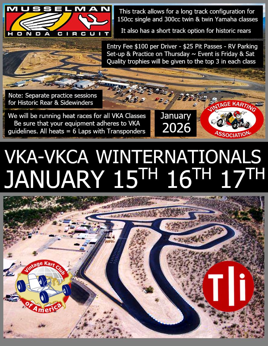 VKA events are held at kart racetracks all across the U.S. They are family oriented events that feature exhibition races and kart shows – designed to promote vintage karting.